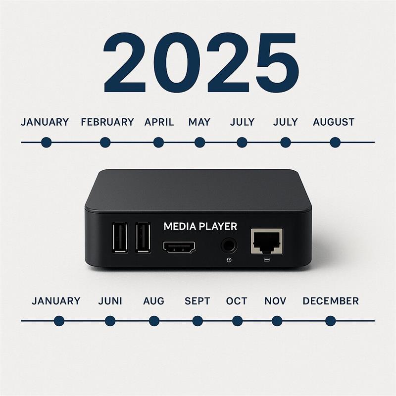 Based on public information and industry reports from January to December 2025, this article summarizes 24 major events that directly impact digital signage media players – including dedicated player hardware, SoC/CPU/GPU/edge-AI platforms used in players, and player operating systems or software stacks. The focus is on media players and embedded player boxes, not on general LCD/LED displays or advertising campaigns. At the end of the list, we highlight five strategic trends that are shaping the next generation of digital signage players worldwide.