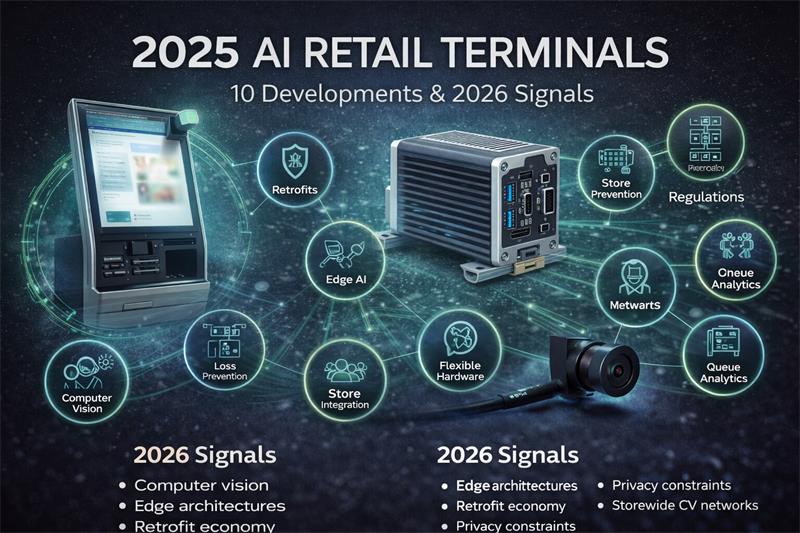 This article summarizes ten major AI retail terminal developments in 2025 and identifies five cross-industry signals shaping how kiosks, self-checkout systems, and edge AI vision architectures will evolve in 2026