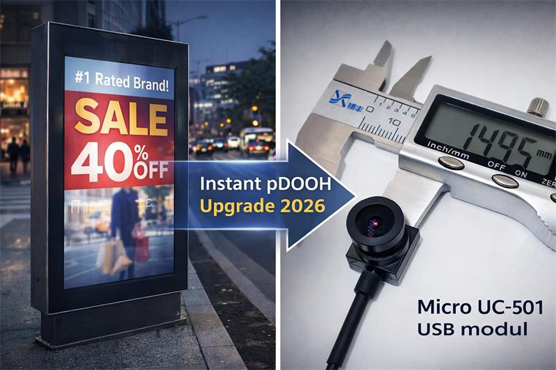 pDOOH Ready Camera Retrofit refers to the strategic integration of industrial-grade embedded vision sensors into legacy digital signage to enable real-time audience analytics without replacing the entire display hardware. To meet the data verification standards of 2026 programmatic DOOH, Novel Electronics provides two specialized pDOOH ready camera solutions: the Ultra-Compact Micro USB Module (UC-501) for space-constrained bezels, and the Sony Starvis WDR Module for outdoor environments requiring high dynamic range and night vision. These modules utilize standard UVC driver-free protocols to resolve hardware integration bottlenecks in aging Linux and Android media players, transforming silent assets into smart, data-generating inventory.