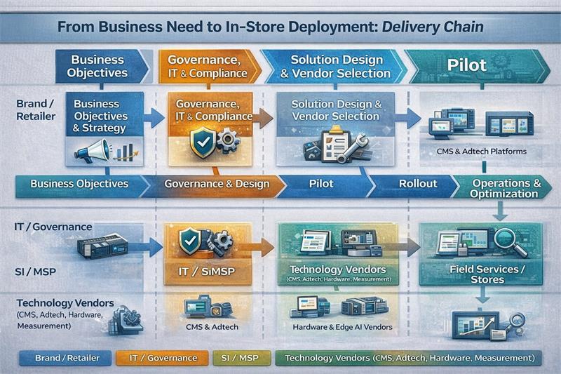 pDOOH retrofit will only scale in 2026 when three aligned forces — network owners demanding auditable delivery, SI/MSP teams prioritizing deployability and low operational risk, and CMS/measurement platforms formalizing verification standards — converge to shift retrofit from experimentation to infrastructure.