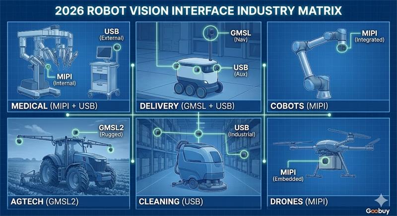 In the 2026 Physical AI landscape, robotic vision architecture is defined by a strategic trade-off: GMSL2 is the mandatory standard for long-range outdoor ruggedness (AgTech, Mining), MIPI CSI-2 dominates compact mass production (Consumer, Medical Arms), and Industrial USB camera is the optimal solution for rapid prototyping and indoor autonomy due to its zero-NRE integration and 60% lower BOM cost.