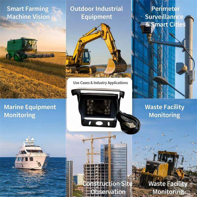 Traffic monitoring, smart bus stops, outdoor kiosks requiring weatherproof vision systems