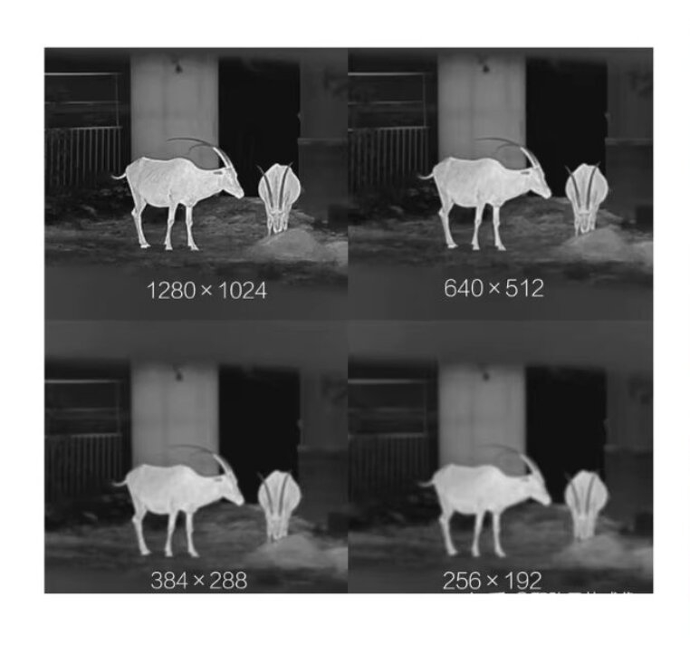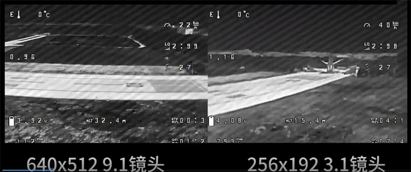 compare real video screenshot between 640*512 EFL 9.1mm lens thermal camera and 256*192 EFL 3.1mm lens thermal camera