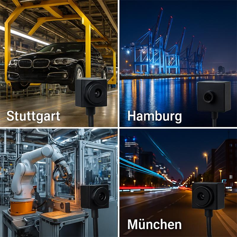 - Deutschland (Beispiel) – In der deutschen Automobilindustrie, insbesondere in Prüf- und Endabnahmebereichen bei OEMs und Zulieferern, werden tragbare USB-Kameras im Format 15×15 mm eingesetzt, um Fahrzeugkarosserien, Schweißnähte und Bauteiloberflächen direkt an der Linie zu inspizieren. Die kompakte Bauweise ermöglicht den Einsatz sowohl in Roboter-Endeffektoren als auch in handgeführten Prüfgeräten, ohne die Taktzeit zu beeinträchtigen.