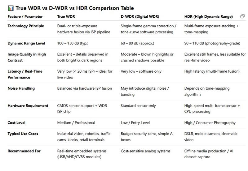WDR is optimized for real-time operation in industrial vision, robotics, and surveillance where instant frame output is critical.