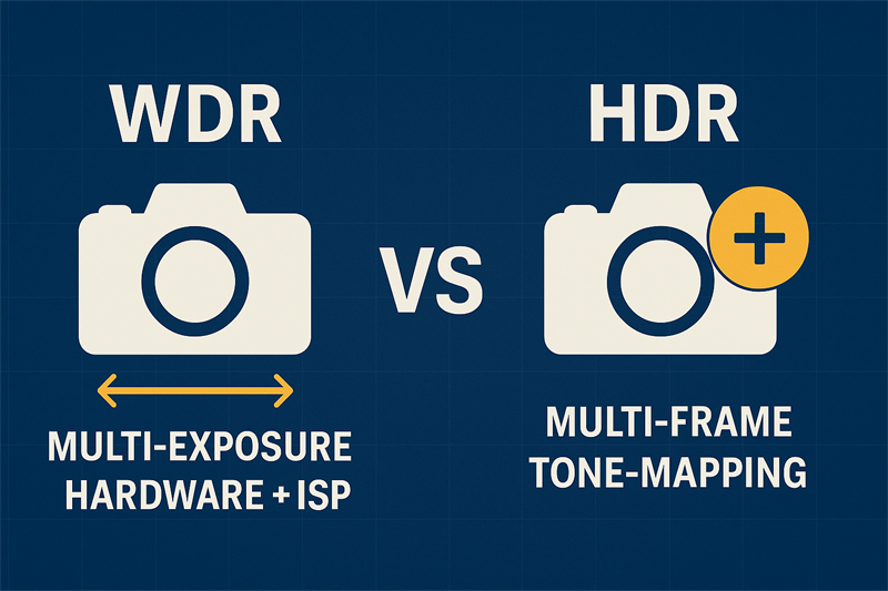 WDR (Wide Dynamic Range) is a feature in modern cameras that uses advanced hardware and software to balance the lighting in these high-contrast scenes, producing a single image where details in both the shadows and highlights are clearly visible.