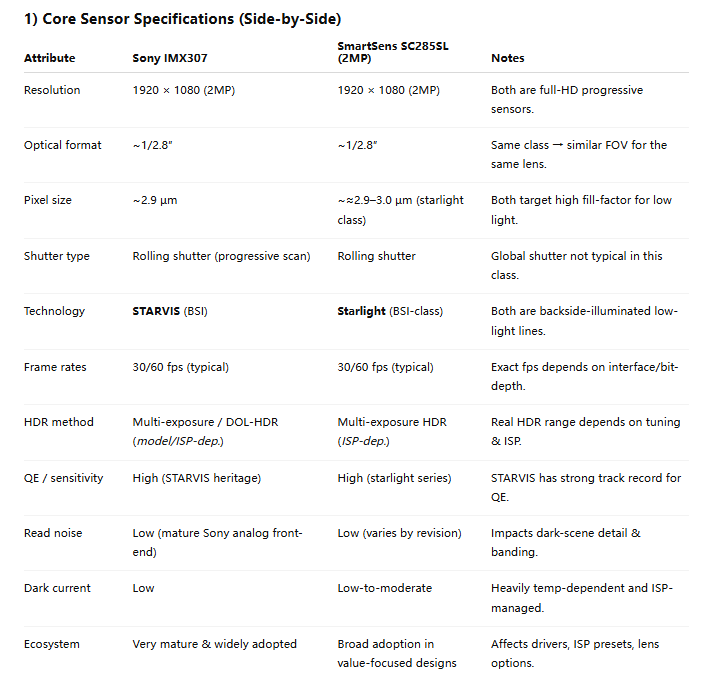 Deep Dive: IMX307 vs SC285SL Performance Analysis